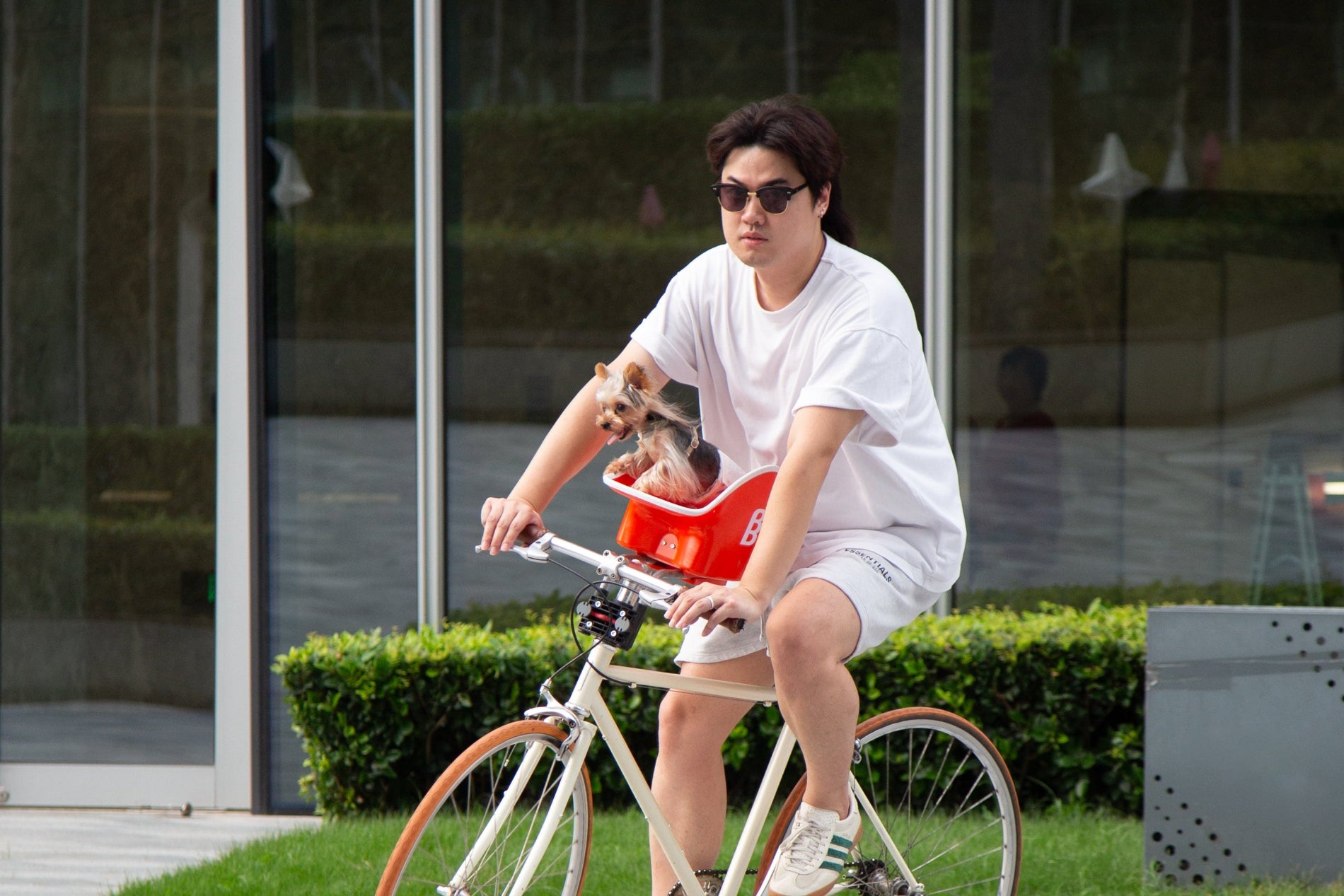 Brompton and folding bikes: Folding bikes are convenient to bring places, but they don’t leave much room for a dog. Our first designs made it difficult for the rider to cycle and turn with your dog and basket in front. So, we’ve heightened the basket to give room for your knees while cycling and changed the angle of attachment so that your pup is sitting parallel to the ground.