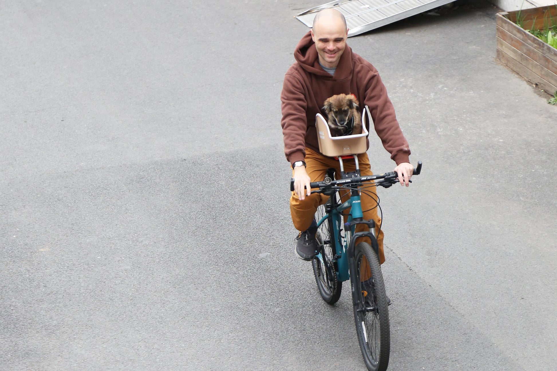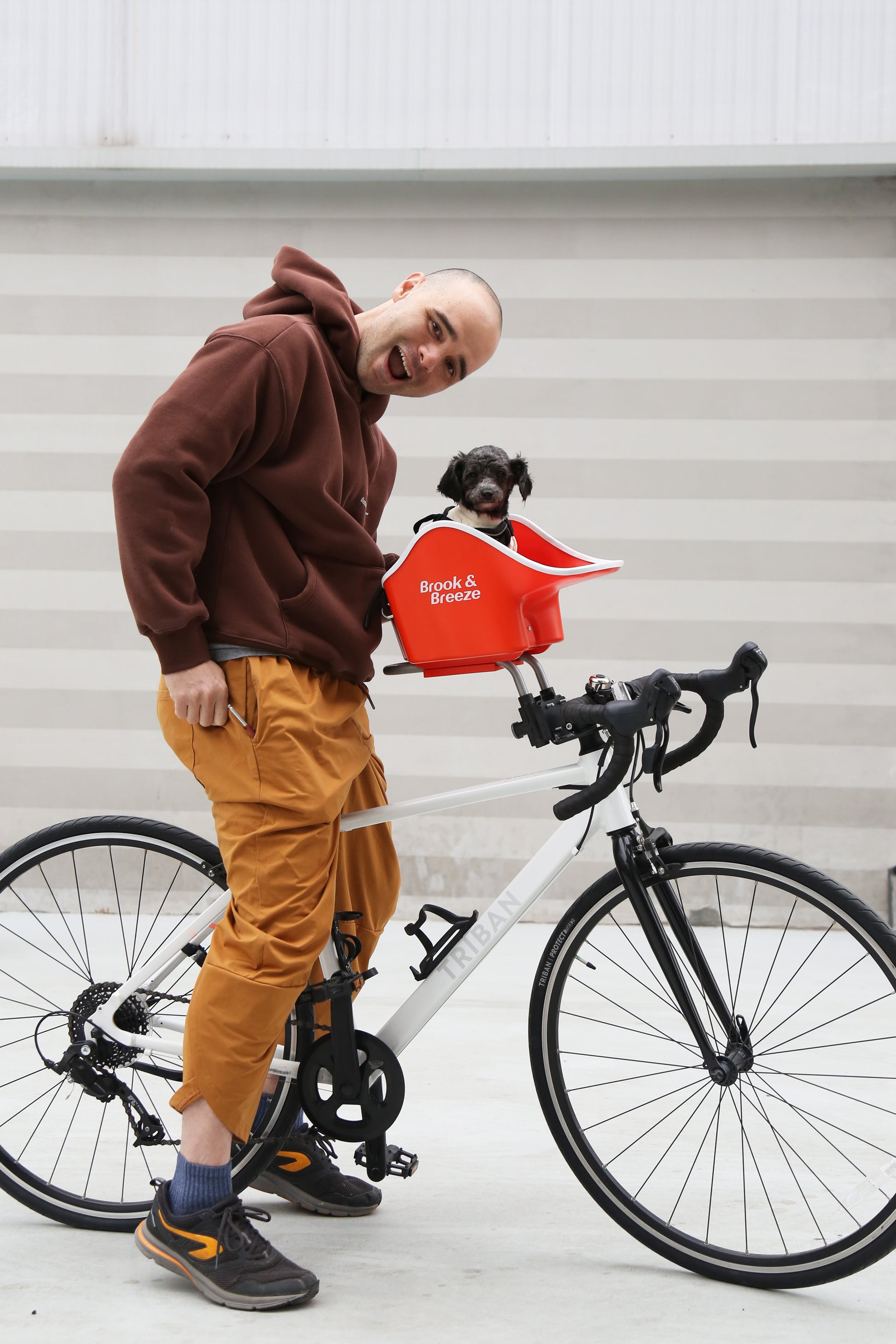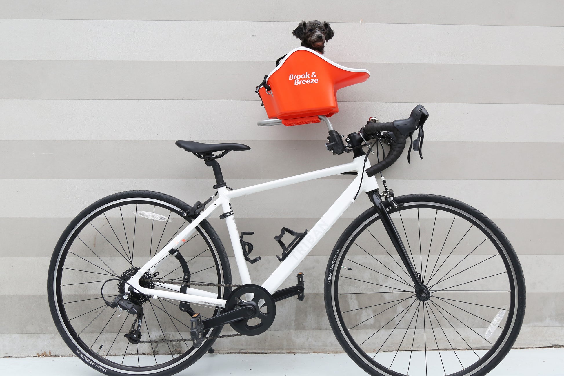 Road bikes, mountain bikes, and other bikes with minimal front spacing (<8cm), you can bring you pup too!